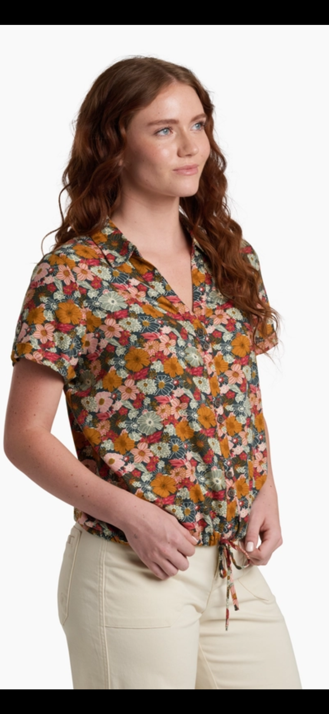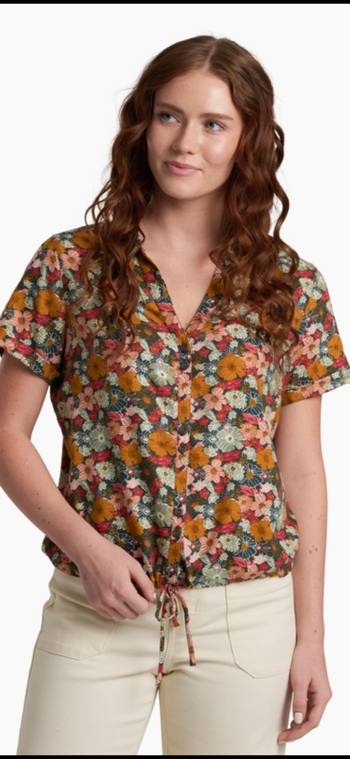 Light weight and airy with a boxy fit, this button up features a cinch able hemline for versatility and performance. Sustainable fabrics, custom prints and comfort for every day!